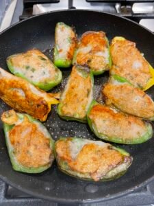 pan over high heat. Place peppers fish side down. Don’t move them immediately—let them set for about 2 minutes. Reduce to medium-high heat, and check if the bottom is golden and crispy.