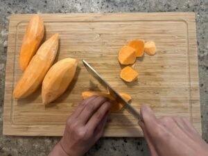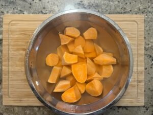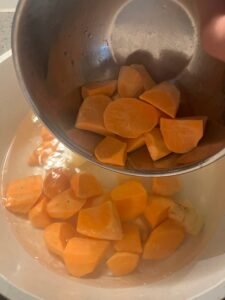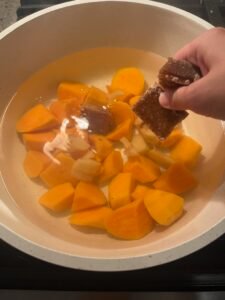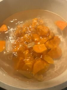 將番薯放入薑水中,煮至滾起後轉中小火,煮15–20分鐘至軟身。