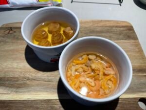 先用熱水浸軟 乾瑤柱 及 蝦米 約 1小時。