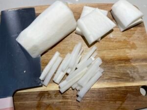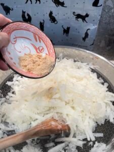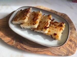 This homemade version is traditional, flavourful, and very doable at home. The key is getting the radish water ratio and batter consistency just right so the final texture is soft, savoury, and full of little bites of radish throughout.