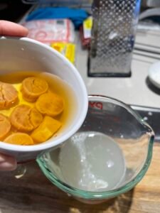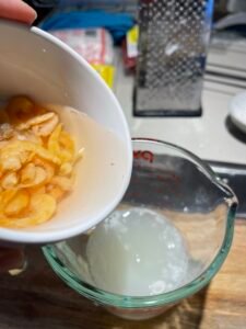 浸好後保留 瑤柱水 和 蝦米水,不要倒掉,之後會用來調粉漿。