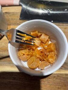 可用竹籤插入中心測試,如沒有濕粉漿黏出,即表示熟透。