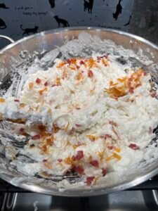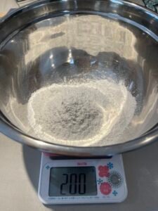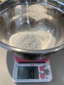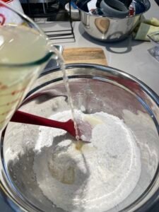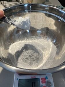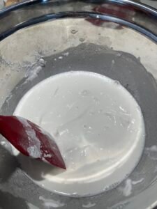 把 600ml液體分3次加入,每次都攪拌均勻,直到完全沒有粉粒,成為順滑粉漿。