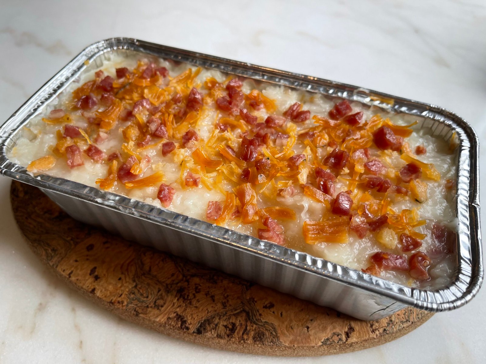 The natural sweetness of daikon radish, the rich aroma of Chinese sausage, and the umami from dried shrimp and scallops come together in a classic Hong Kong-style savoury cake that many families enjoy, especially during Lunar New Year.