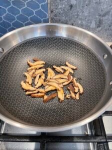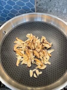 原鍋加入冬菇炒1~2分鐘,再加入百合炒勻。
