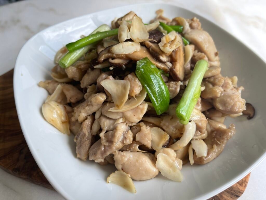 百合鮮冬菇炒雞肉 Stir-Fried Chicken with Lily Bulbs & Shiitake Mushrooms