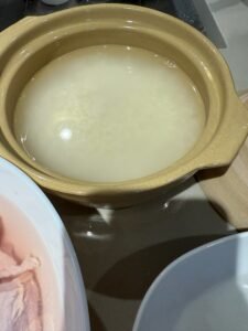 把米洗淨,用清水浸 5–10 分鐘,之後倒去浸米水。