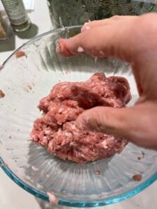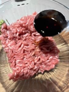 醃豬肉碎 15 分鐘,用手攪豬肉碎增加黏性。將一湯匙豬肉碎用手弄成肉丸。